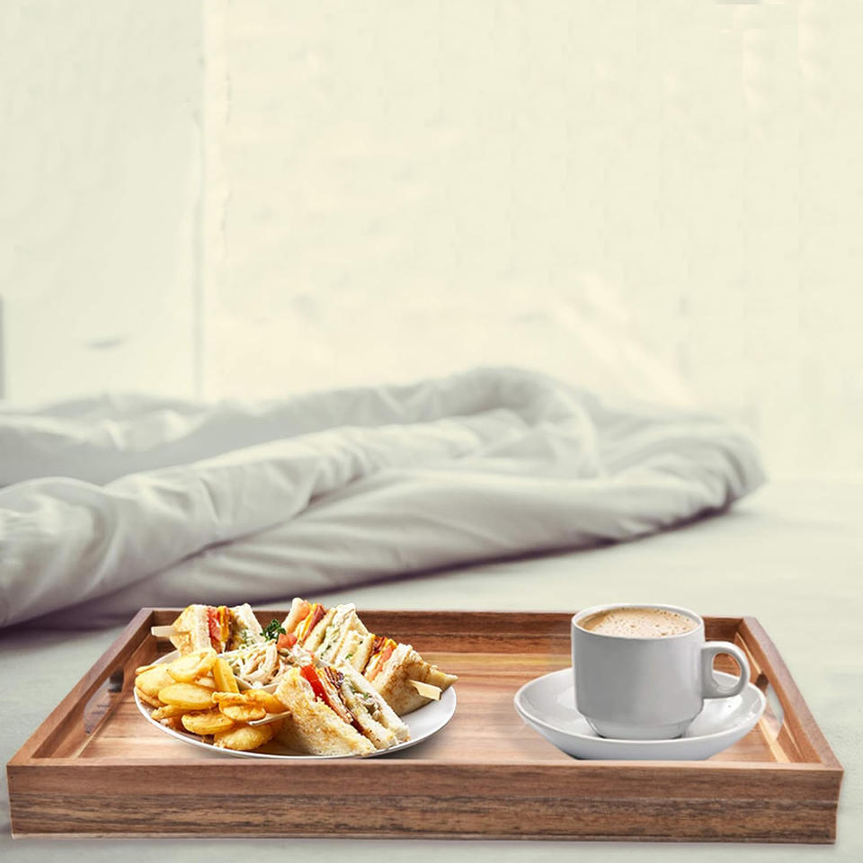 ชุดถาดไม้บีช2ชิ้นทำจากไม้ธรรมชาติพร้อมที่จับถาดไม้สำหรับเสิร์ฟอาหารในงานเลี้ยงอาหารเช้ามื้อกลางวัน