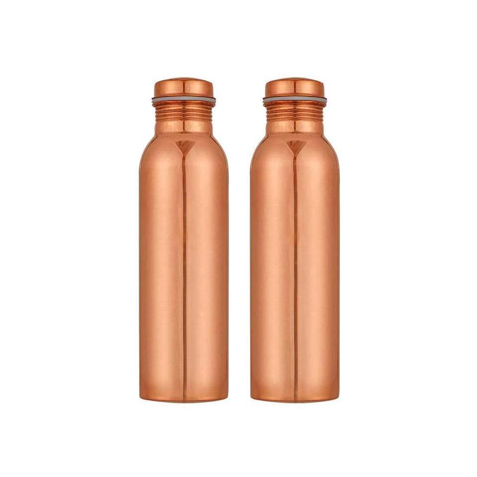 ชุดขวดน้ำทองแดงแบบเรียบ 2 ใบ พร้อมฝาพลาสติก โดย JAGDAMBA CUTLERY LIMITED