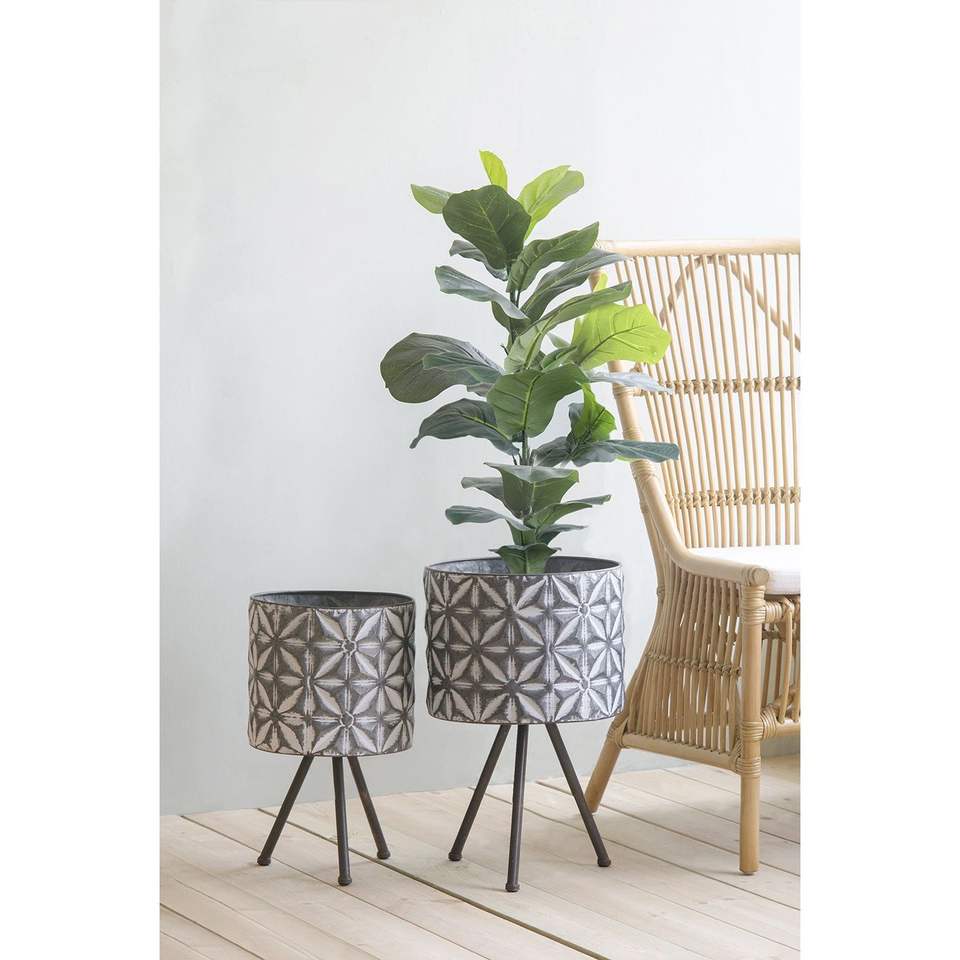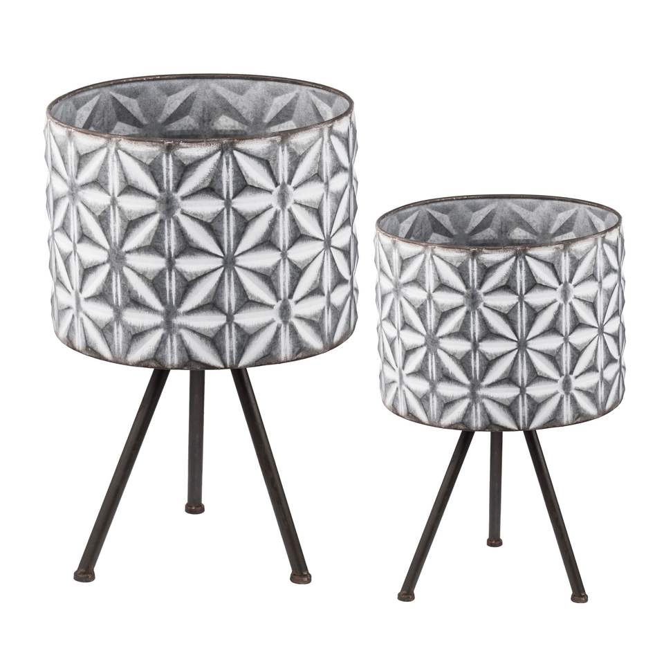 Set of 2 Round Galvanized Grey Metal Planter Stand Farmhouse Style Flower Pots & Planters