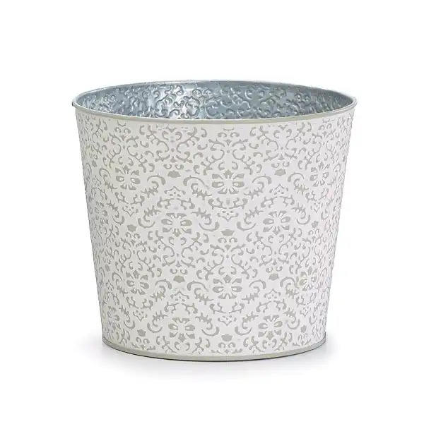ชุดกระถางดอกไม้โลหะชุบสังกะสีสีขาวล้างเงา รูปทรงกลม 2 ใบ ดีไซน์ลายนูน เป็นมิตรกับสิ่งแวดล้อม เหมาะสำหรับตกแต่งบ้าน สวนกลางแจ้ง และสถานรับเลี้ยงเด็ก