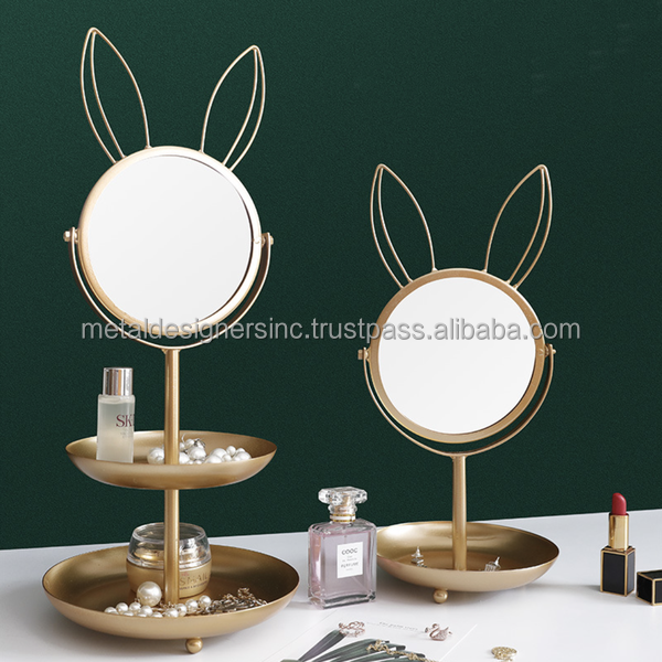 ชุด2รอบกระต่ายกระจกสีทองที่มีถาดกระจกโต๊ะตกแต่งรอบห้องนอนห้องน้ำล็อบบี้และในร่มและกลางแจ้งกระจก