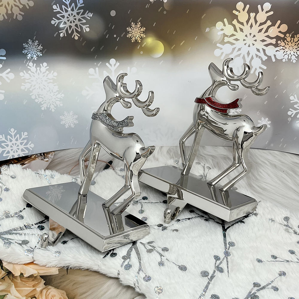 ชุดแขวนถุงเท้าคริสต์มาสรูปกวางเรนเดียร์ 3 มิติ สีเงินเงา จำนวน 2 ชิ้น สำหรับตกแต่งบนเตาผิง