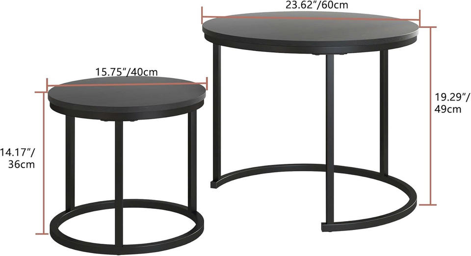 ชุดโต๊ะกาแฟกลมเล็ก2ตัวโต๊ะทำรังสีดำทันสมัยด้านบนเป็นไม้และกรอบโลหะสำหรับห้องนั่งเล่น