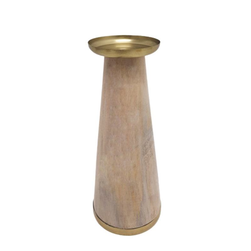 ชุดเชิงเทียนเหล็กและไม้ขนาดเล็ก2ชิ้นเชิงเทียนคริสตัลสีทองสำหรับตกแต่งบ้านและบนโต๊ะ