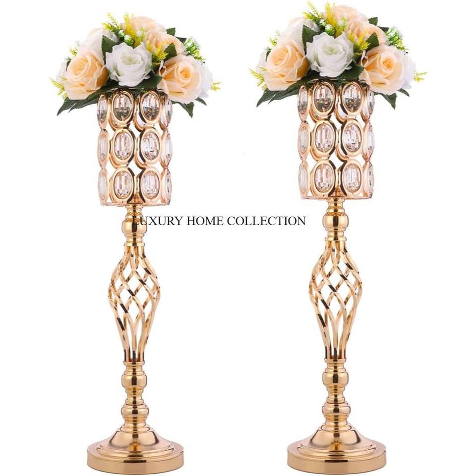ชุดแจกันบนโต๊ะอาหาร2ชิ้นทำจากทองเหลืองขัดเงาสีทองคุณภาพพิเศษออกแบบได้ตามต้องการขนาดดอกไม้ทรัมเป็ต