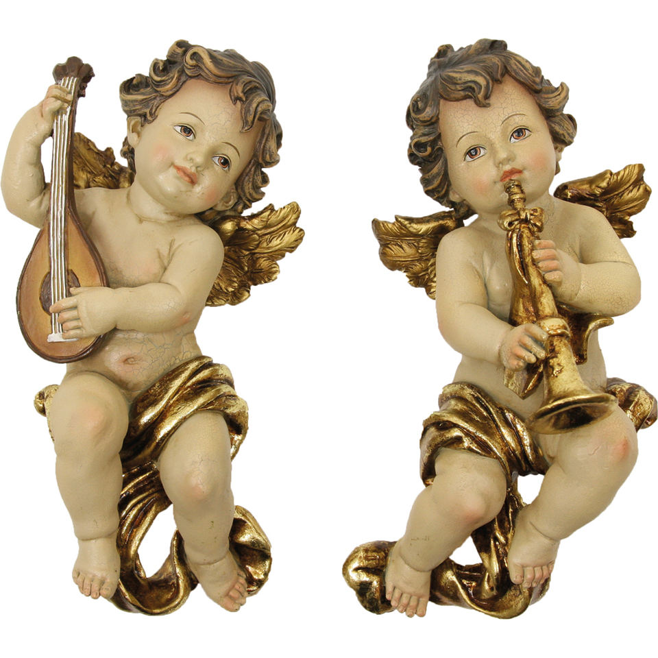 ZICOM ชุดรูปปั้นนกนางฟ้าติดผนังเล่นดนตรี สีทอง ขนาด 20 ซม. ผลิตในเยอรมนี รุ่น 9069-E032-20