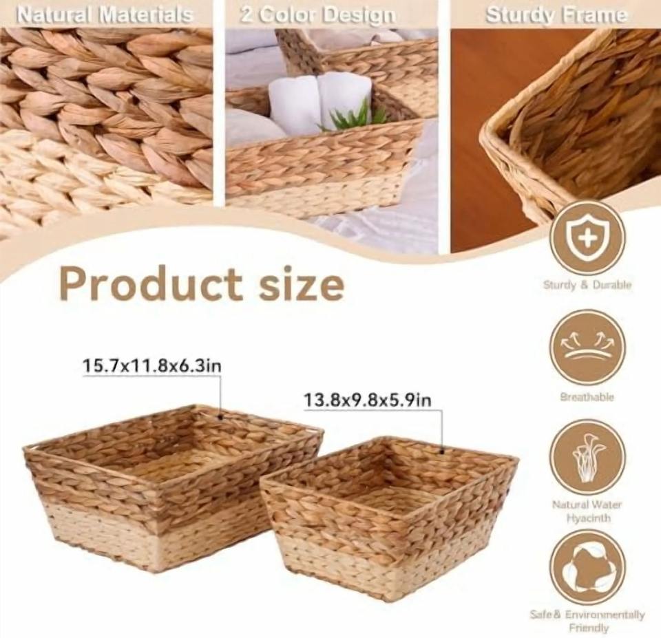 Set of 2 Water Hyacinth Baskets in 2 Colors Handmade Storage Basket Wholesale eco-friendly Made in Vietnam