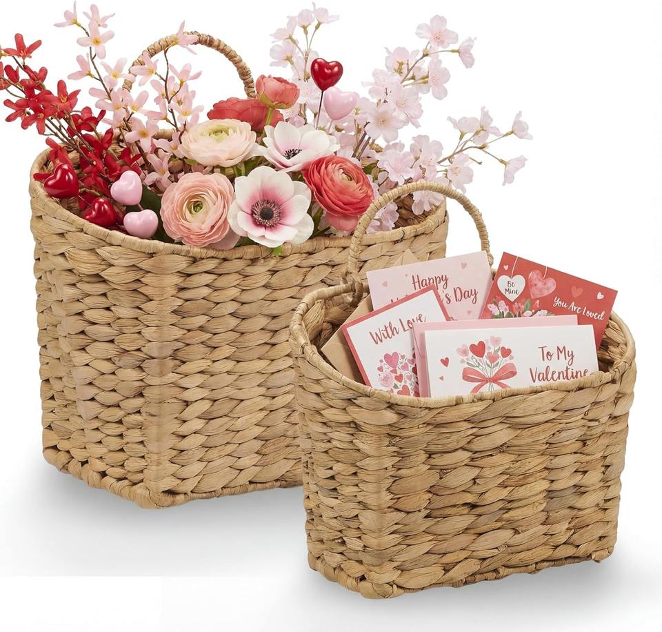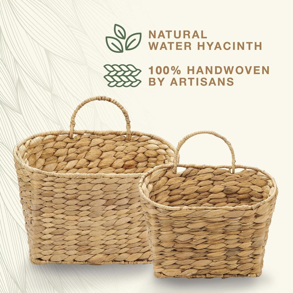 ชุดตะกร้าหวายแขวน 2 ใบ สำหรับจัดระเบียบ ตะกร้าเก็บของทำมือ ขายส่ง เป็นมิตรกับสิ่งแวดล้อม ผลิตในเวียดนาม