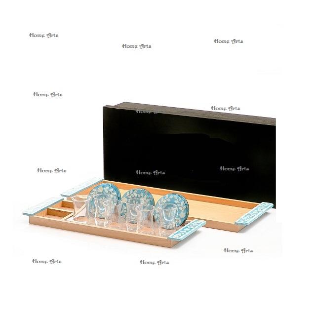 ชุดถาดเสิร์ฟขนมหวานไม้ 2 ชิ้น พร้อมชุดจานรองแก้ว MOP ชุดถาดผลไม้ขนมหวานรูปทรงสี่เหลี่ยมผืนผ้า 2 ชิ้น ในอินเดีย