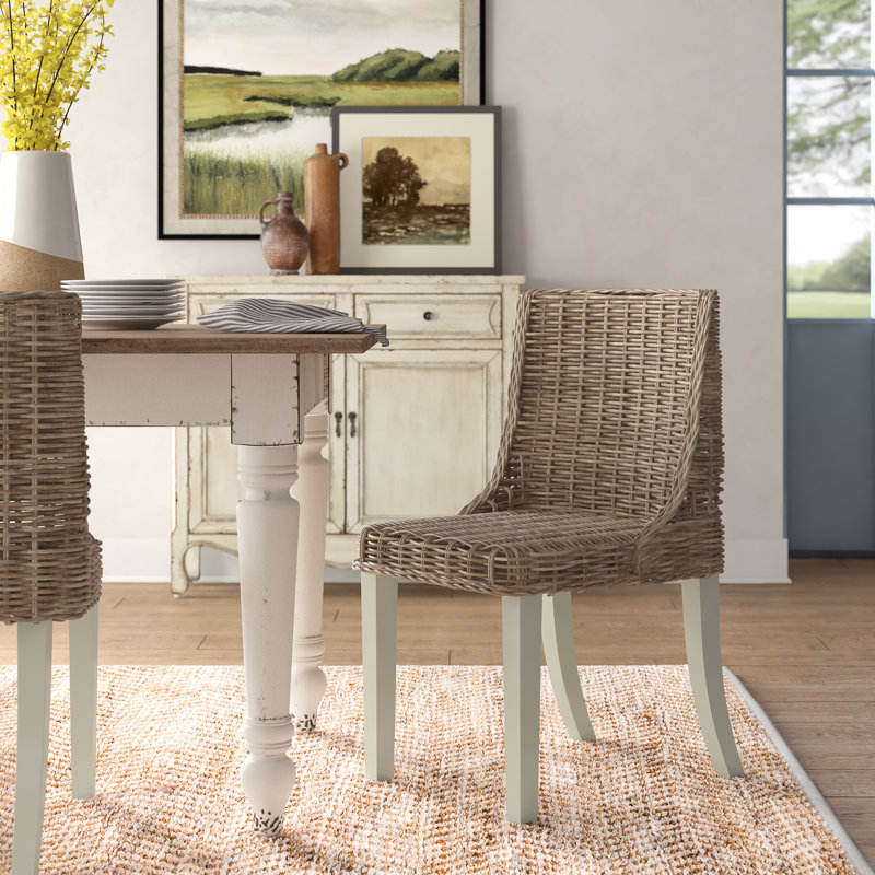 Set of 2 Woven Rattan Dining Chairs Boho Home Furniture Side Chair with Stylish Design