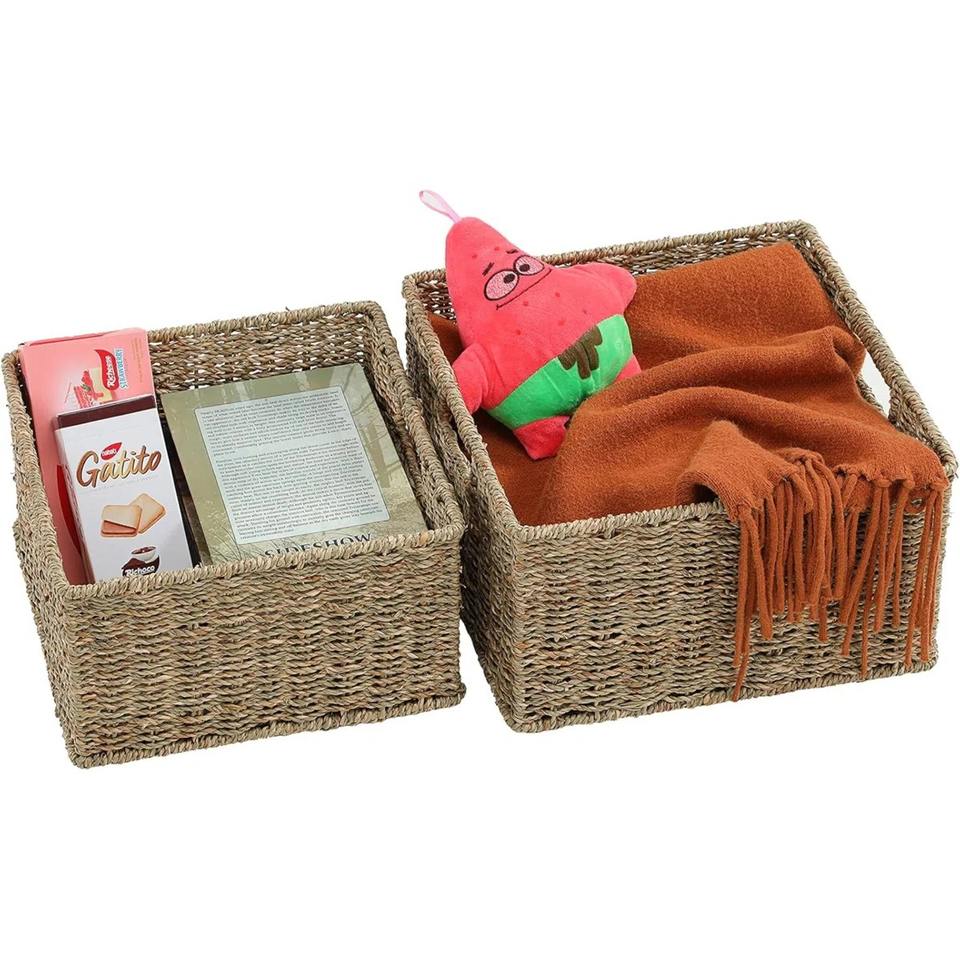ชุดตะกร้าสานทรงสี่เหลี่ยม 2 ใบ ซ้อนกันได้ ตะกร้าเก็บของทำมือ ขายส่ง เป็นมิตรกับสิ่งแวดล้อม ผลิตในเวียดนาม