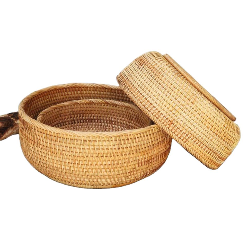 ชุดตะกร้าผลไม้หวายทรงกลมสไตล์ชนบทสำหรับตกแต่งผักงานทำมือ3ชิ้นทำจากไม้ไผ่สำหรับห้องครัวขายส่ง