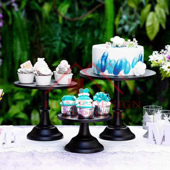 ที่ตั้งโชว์เค้กโลหะสำเร็จรูปสีดำ3ชุดอุปกรณ์ตกแต่งงานแต่งงานงานอีเวนต์
