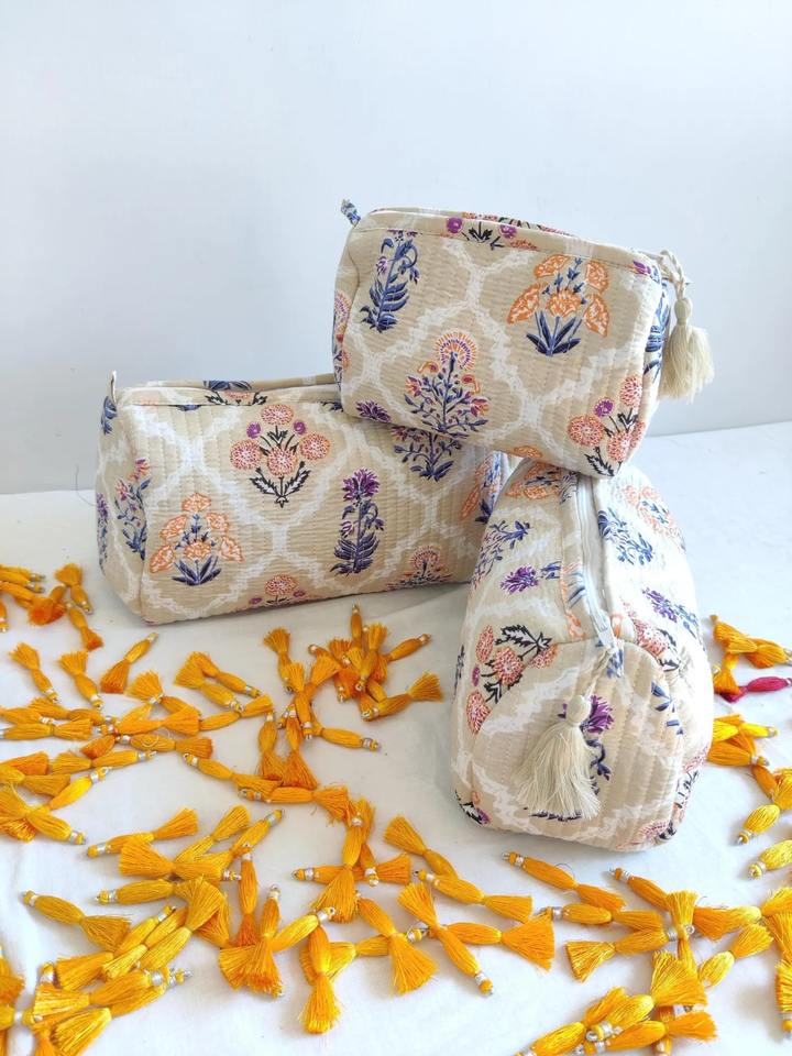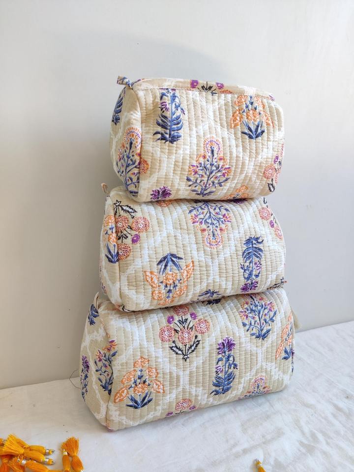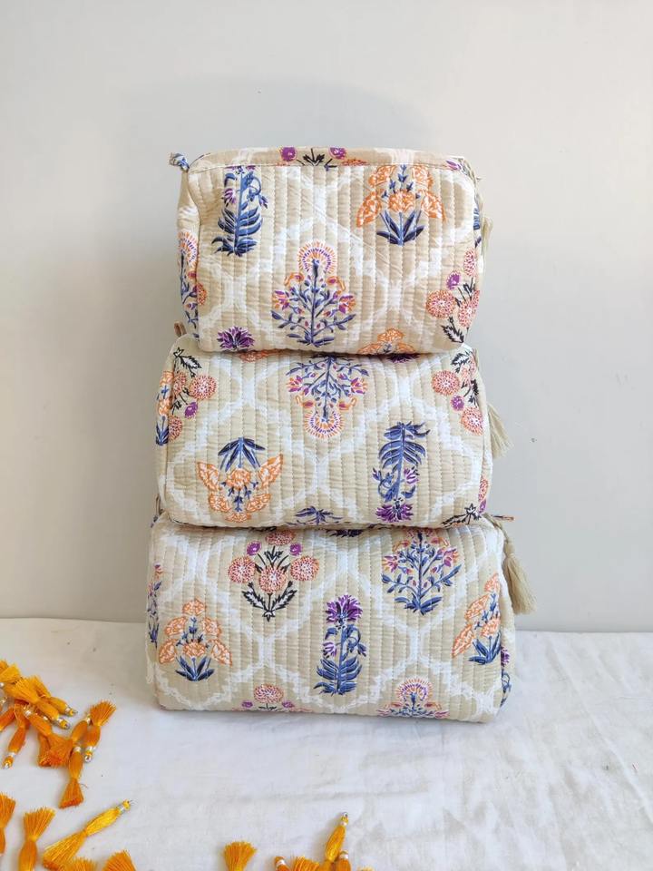 ชุดผ้าฝ้ายพิมพ์ลาย3ชิ้นทำด้วยมือสำหรับเคสสไตล์วินเทจความจุมากกันน้ำของขวัญจัดส่งฟรี