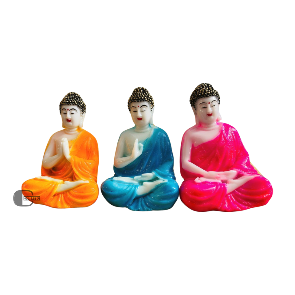 ชุด3รูปปั้นพระพุทธรูปทำจากเรซินสีสันสดใส