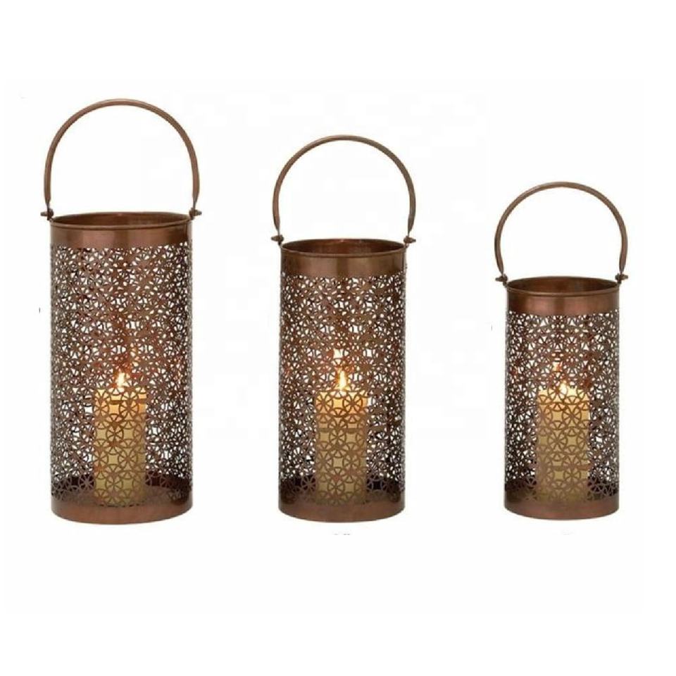 ชุดเชิงเทียนเหล็กทองแดง3ชิ้นสำหรับตกแต่งเทศกาลคริสต์มาสตกแต่งงานแต่งงานโคมไฟแขวนเทียนในสวน