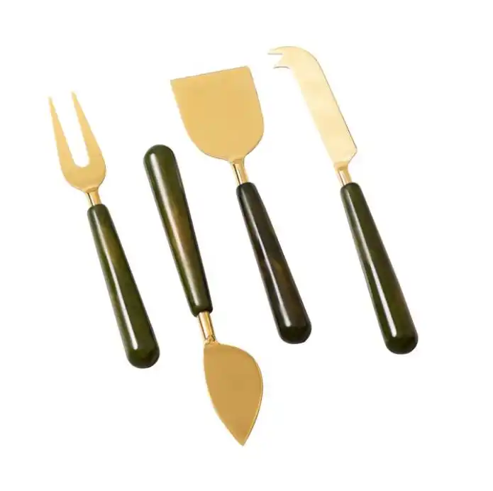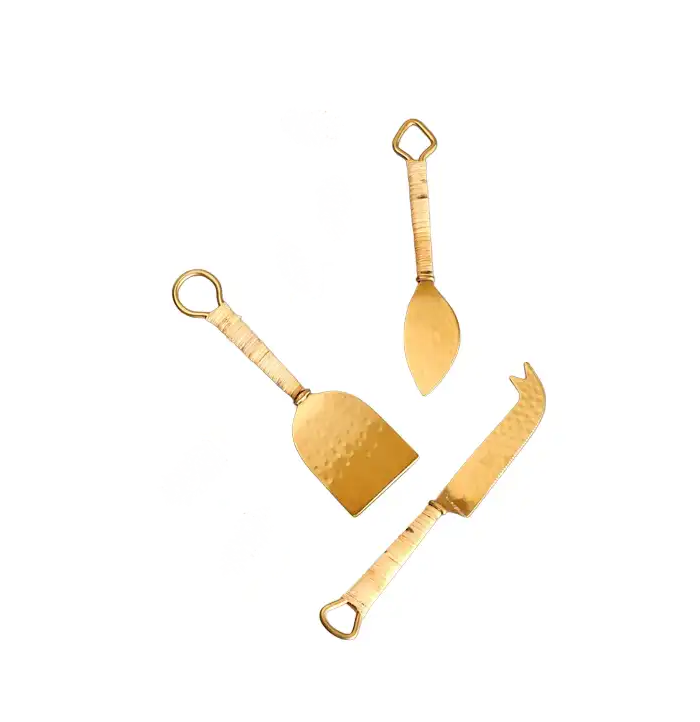 ชุดมีดตัดชีสสแตนเลส 3 ชิ้น ด้ามจับลายขนนกสีทอง สำหรับตัดชีส เนย และอาหารอื่นๆ