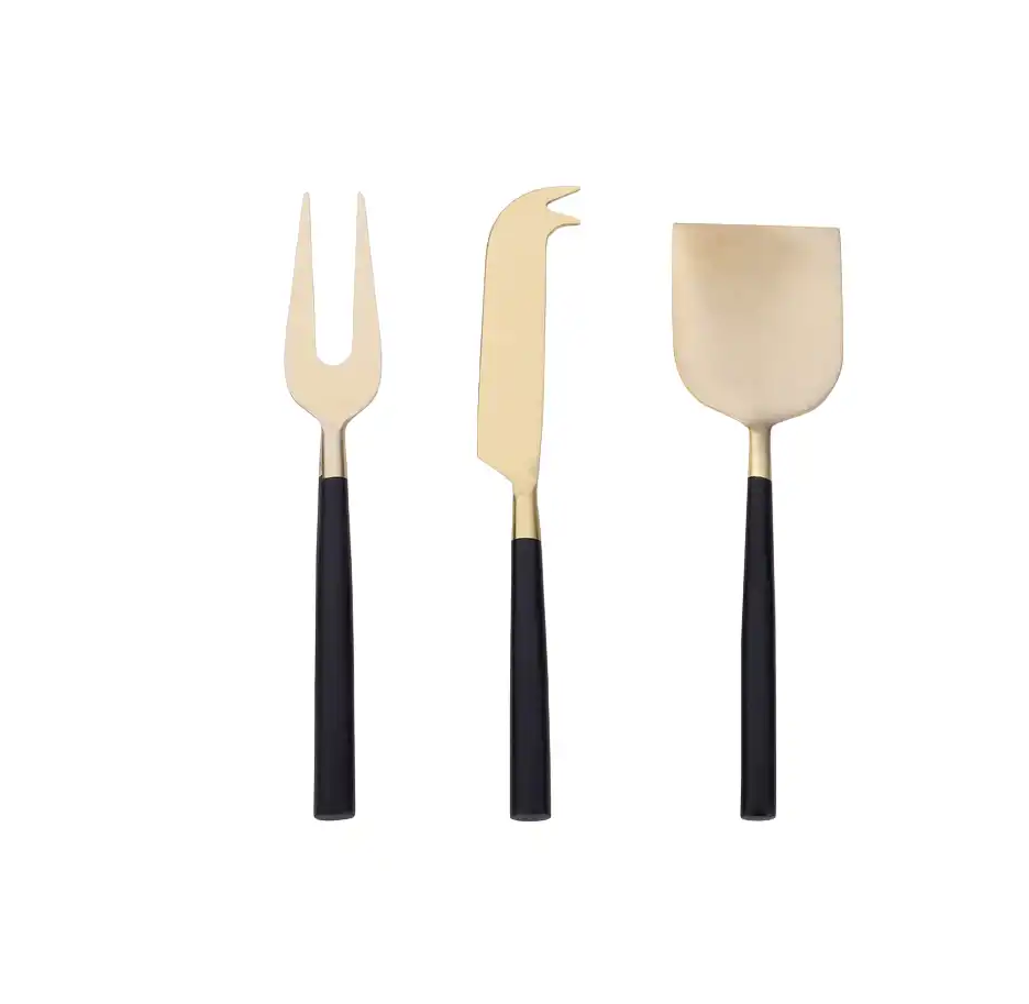 ชุดมีดตัดชีสสแตนเลส 3 ชิ้น ด้ามจับลายขนนกสีทอง สำหรับตัดชีส เนย และอาหารอื่นๆ