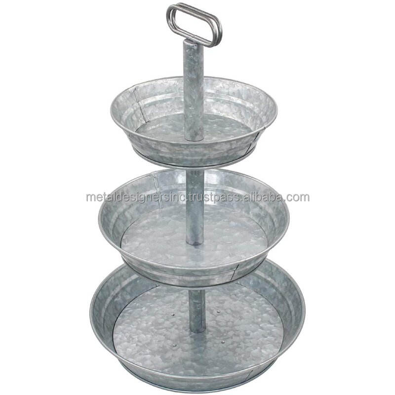 ชุดที่วางเค้กทรงกลมทำจากโลหะกัลวาไนซ์เครื่องมือบนโต๊ะอาหารดีไซน์เรียบง่ายและน่าดึงดูด3ชิ้น