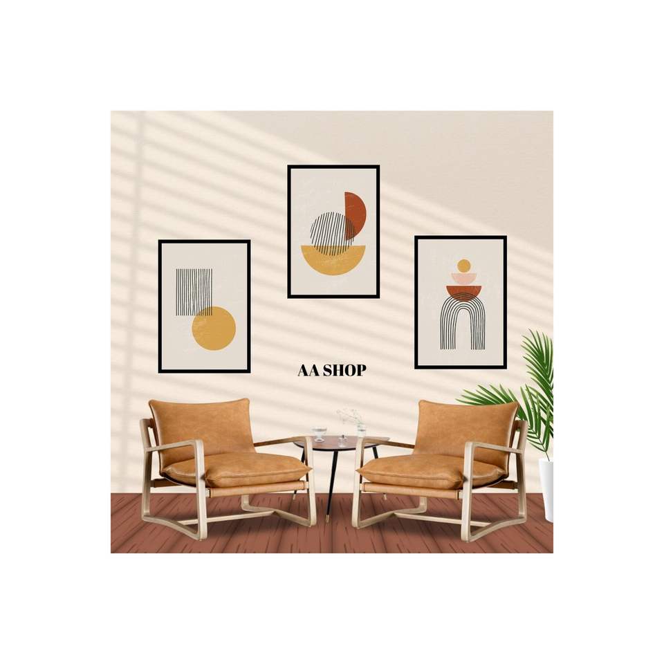 ชุดกรอบตาราง MDF สีเรขาคณิต3สีพิมพ์ลายคุณภาพศิลปะ9ชิ้น
