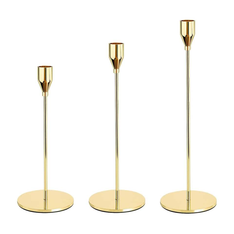 ชุดเชิงเทียนโลหะสีทอง3ชิ้นที่ทันสมัยสำหรับงานแต่งงานคริสต์มาสอีสเตอร์ของตกแต่งบ้านและอีเวนต์