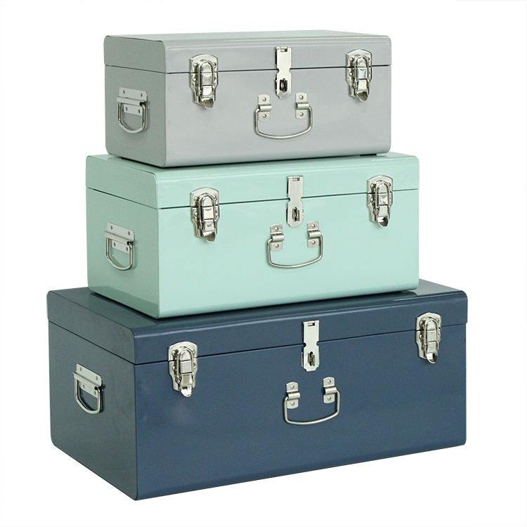 Set of 3 Grey Mint Blue Metal Storage Trunk for Home Hotel Sports Decoration and Clothes Toys Sundries Storage