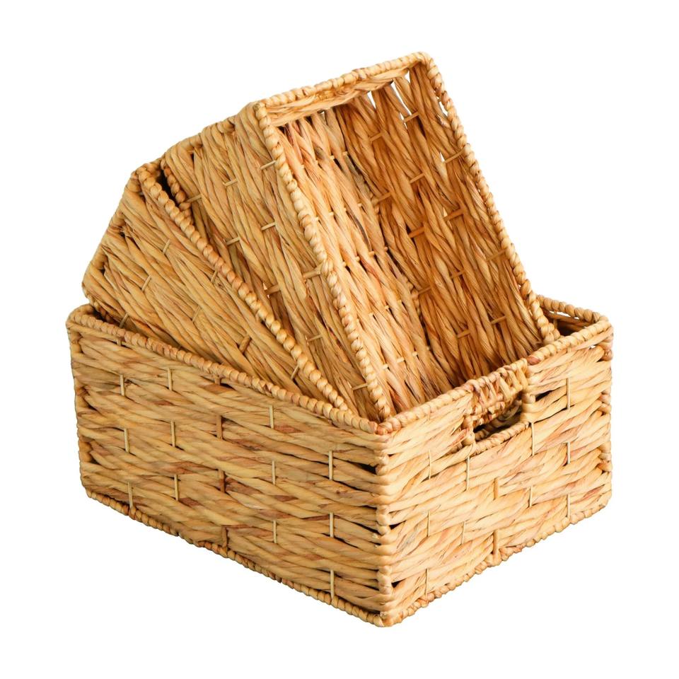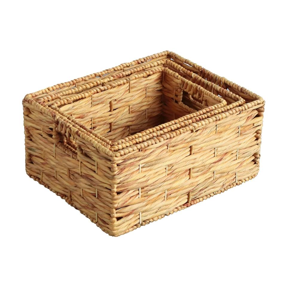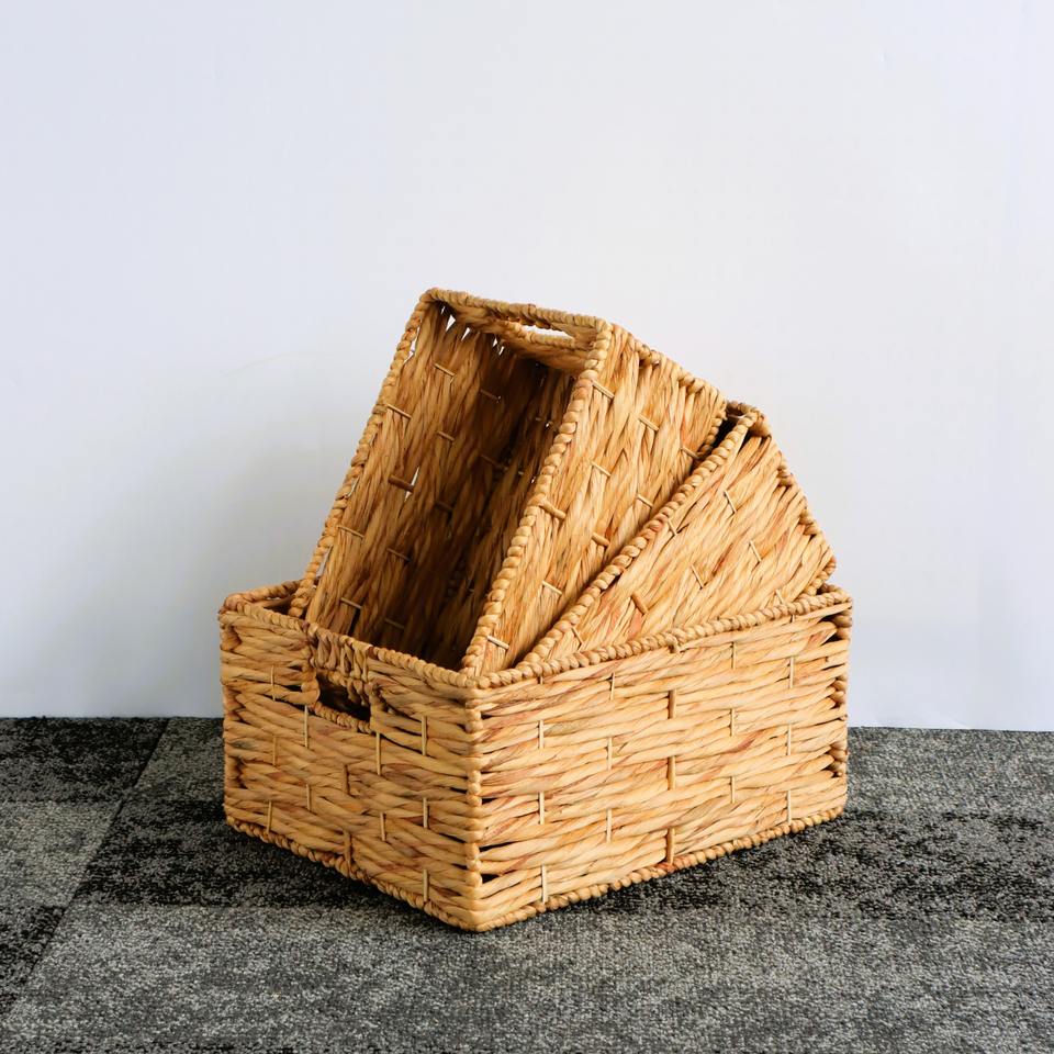 ชุดตะกร้าหวายถักมือ 3 ใบ ตะกร้าเก็บของทำมือ ขายส่ง เป็นมิตรกับสิ่งแวดล้อม ผลิตในเวียดนาม
