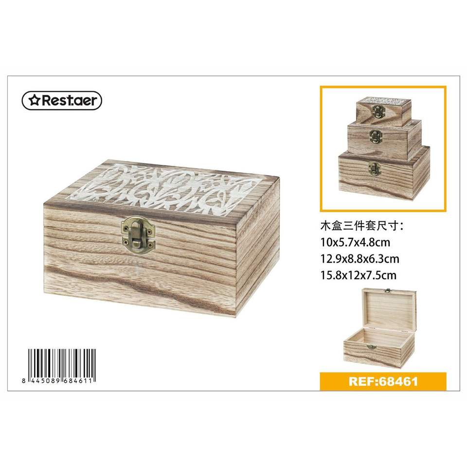 ชุดกล่องไม้ทำมือ 3 ชิ้น ขนาด 16x12x8 ซม. รูปทรงสี่เหลี่ยมผืนผ้า สำหรับเก็บช็อกโกแลตและงานฝีมือเทียนหอม วัสดุไม้แกะสลักด้วยเลเซอร์