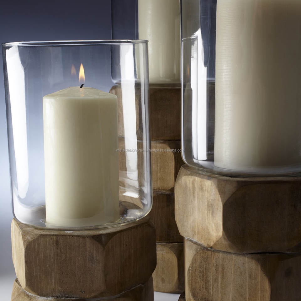 ชุดเชิงเทียนไม้เฮอร์ริเคนดีไซน์น็อตหกเหลี่ยมจำนวน3ชิ้นสำหรับรับประทานอาหารเชิงเทียนสำหรับงานเทศกาลในโรงแรมห้องนั่งเล่น