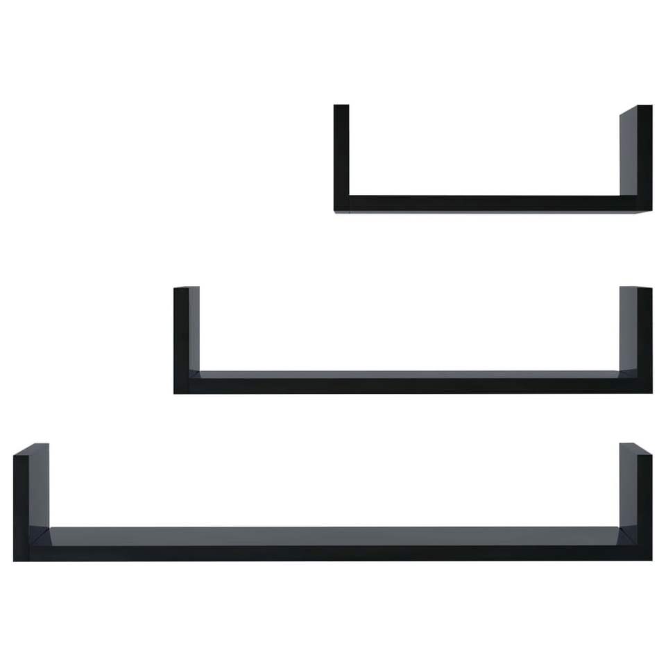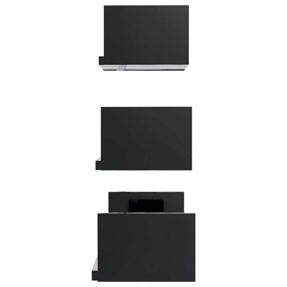 ชุดชั้นวางของติดผนังและชั้นโชว์ไม้เอ็นจิเนียร์สีดำเงาสูง 3 ชิ้น