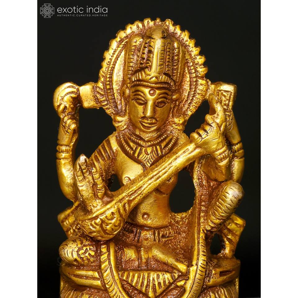 ชุด3นิ้วทำด้วยมือรูปปั้นทองเหลืองขนาดเล็กสามชิ้นของ lakshmi Ganesha และ saraswati สำหรับตกแต่งบ้านและวัดผลิตในอินเดีย