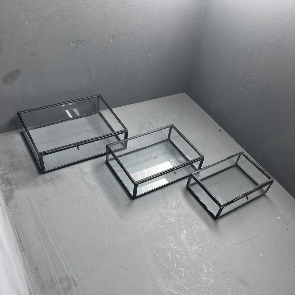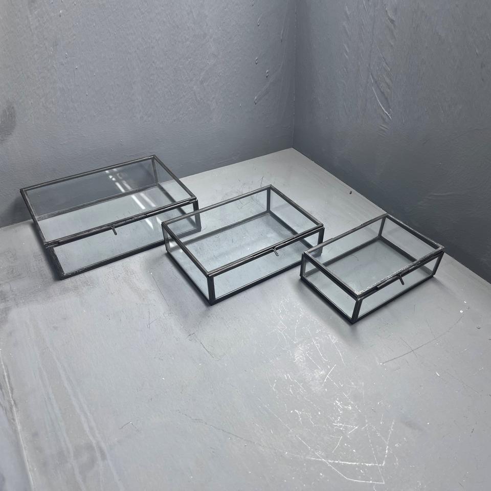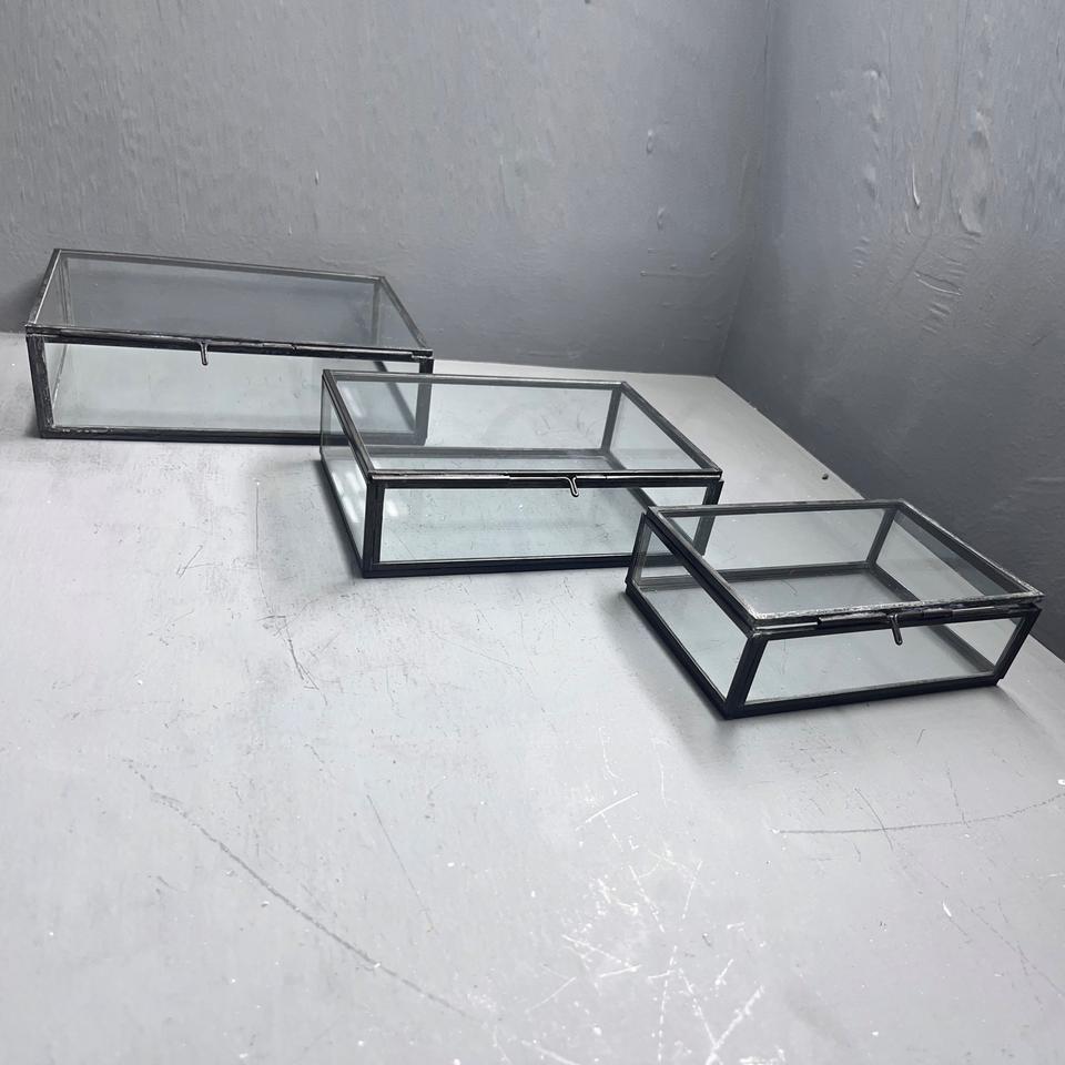 Set of 3 Jewelry Box Organizers with Black Finish Brass & Glass Storage Boxes (Model B331 ABC)