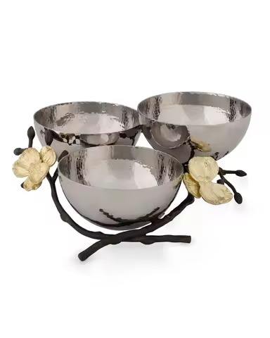 ชุด3ข้อต่อสแตนเลสและทองเหลืองชามเสิร์ฟของตกแต่งโต๊ะอาหารชามเสิร์ฟชามเสิร์ฟสำหรับขนมถั่วสลัดฯลฯ