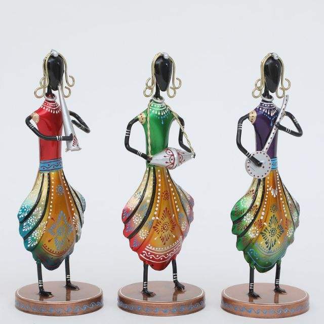 ชุดที่มีน้ำหนักเบาหลากสีสันสำหรับนักดนตรีตุ๊กตา Punjabi 3ชิ้นรูปแกะสลักสำหรับติดตั้งบนโต๊ะ