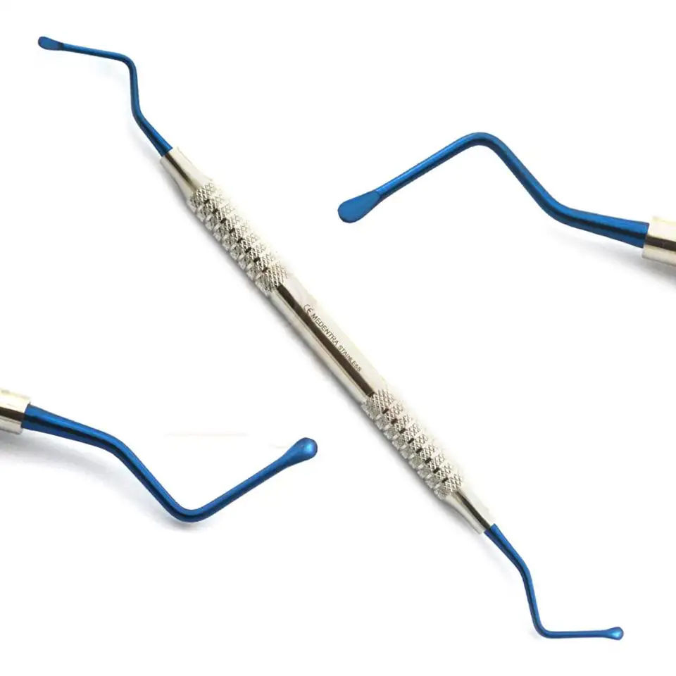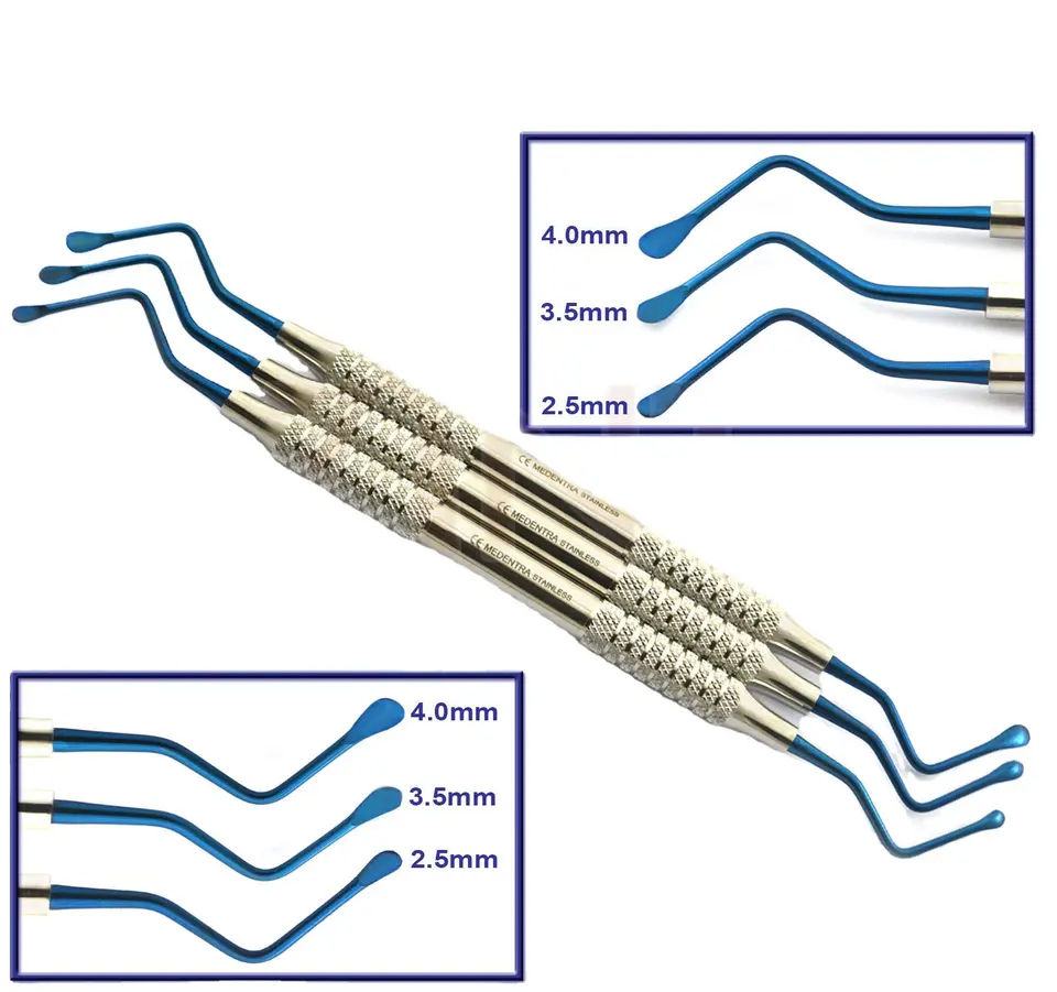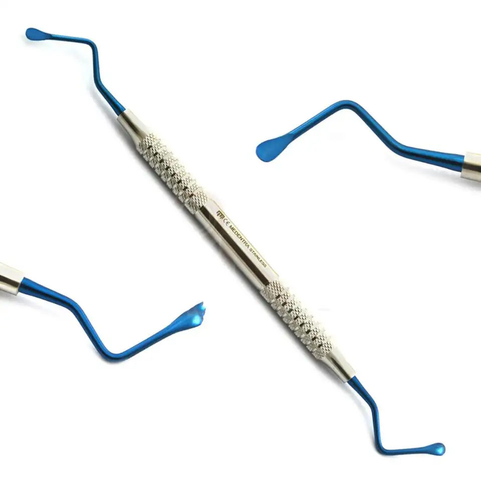ชุดเครื่องมือขูดกระดูกลูคัสแบบใช้ซ้ำได้ 3 ชิ้น ปลายสีน้ำเงิน สำหรับกำจัดซีสต์ ทำจากสแตนเลสสตีล ได้รับการรับรองมาตรฐาน CE ระดับ I