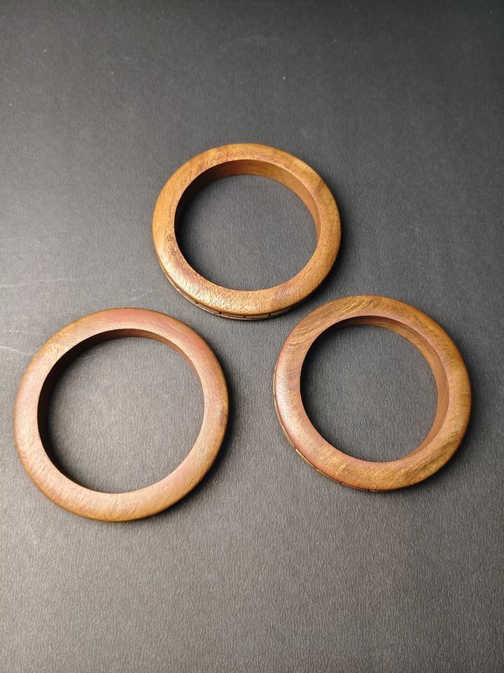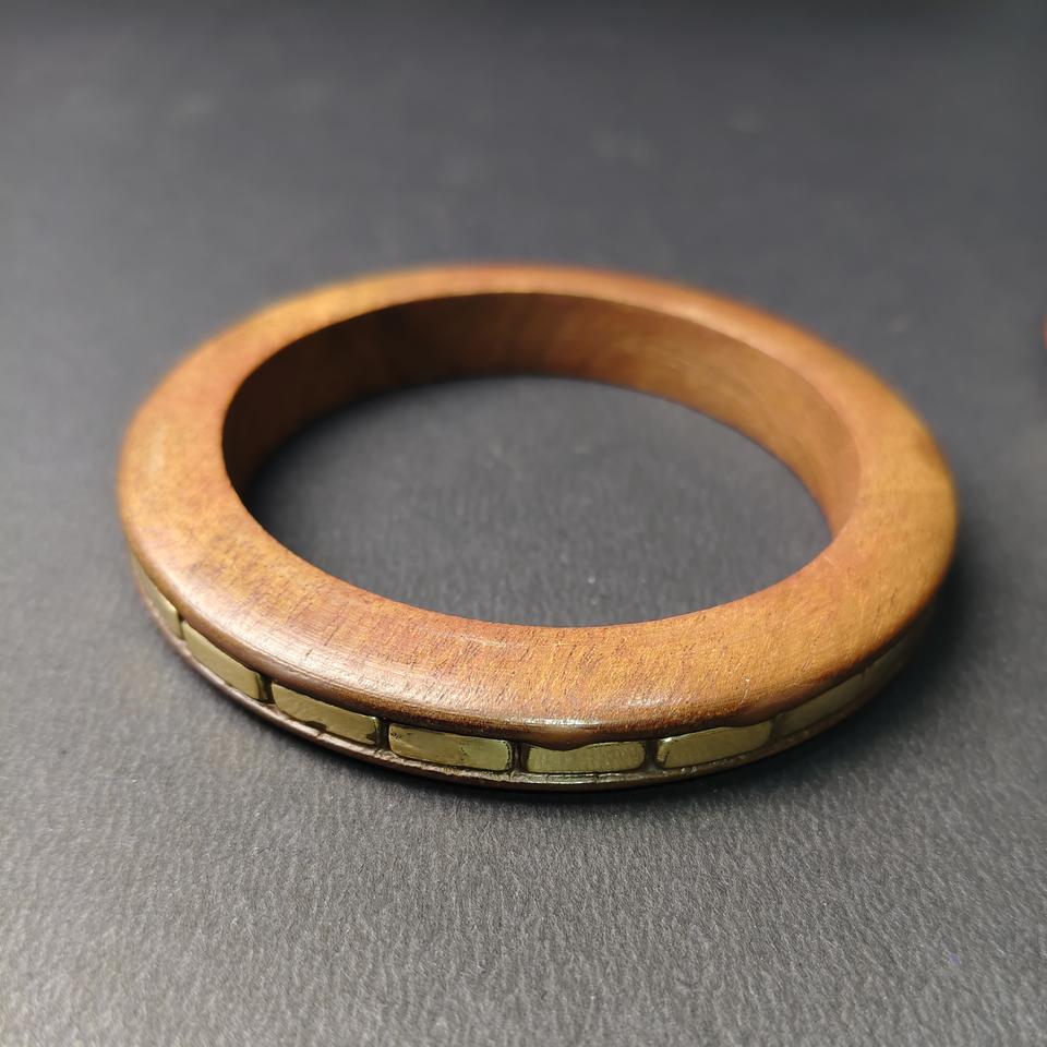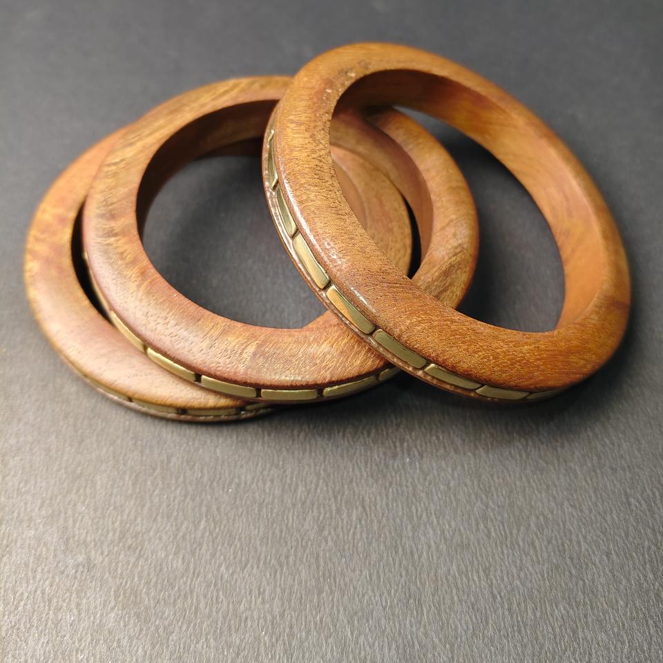 ชุดกำไลไม้หรูหรา 3 ชิ้น พร้อมบล็อกโลหะทองเหลืองรูปทรงสี่เหลี่ยม สไตล์โบฮีเมียน กำไลไม้แบบซ้อนได้