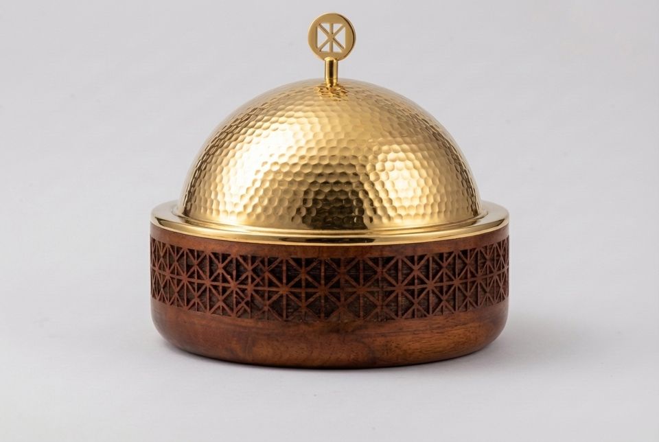 ชุดถาดอุ่นอาหารทรงกลมสีดำด้าน 3 ชิ้น พร้อมขาตั้งโค้งสำหรับงานจัดเลี้ยงหรูหรา