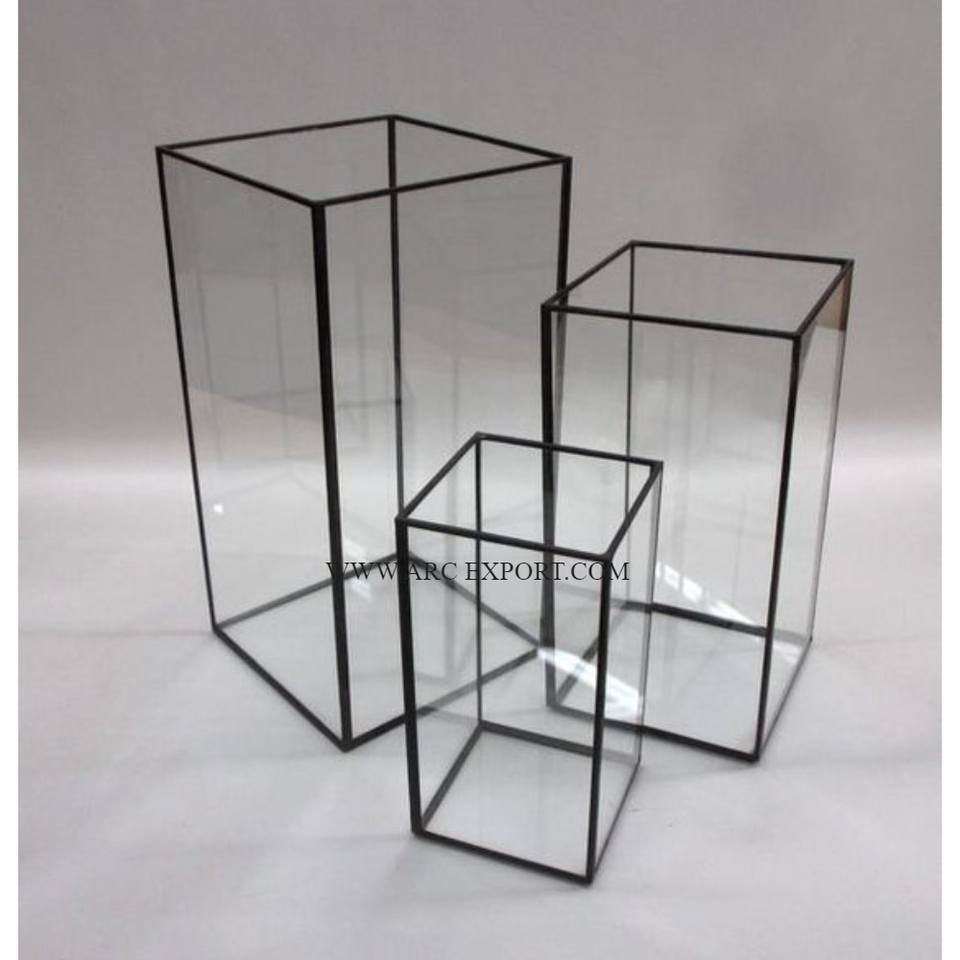 ชุดโลหะ3ชิ้นและแก้วสีดำมาตรฐานการออกแบบขนาดแตกต่างกันจัดเก็บสำหรับจัดงานแต่งงานและตกแต่งบ้าน