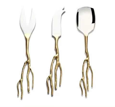 ชุดที่หั่นชีสทำจากสเตนเลสสตีลพร้อมด้ามสีทองชุดชีส3ชิ้นสุดหรูใหม่