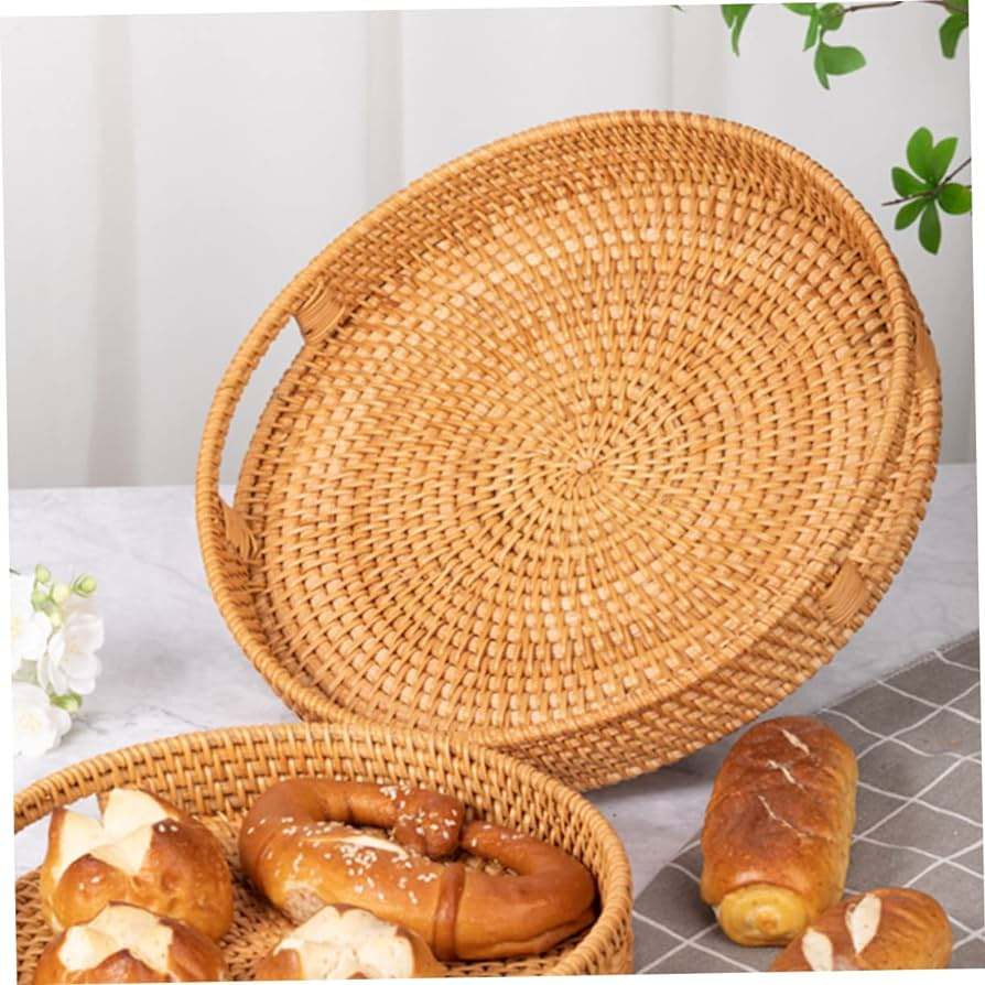 ชุดถาดเสิร์ฟหวายสานมือทรงกลม 3 ชิ้น เป็นมิตรกับสิ่งแวดล้อม ตกแต่งสวยงาม พร้อมหูจับ ใช้ในบ้าน โรงแรม รีไซเคิลได้ ทนทาน