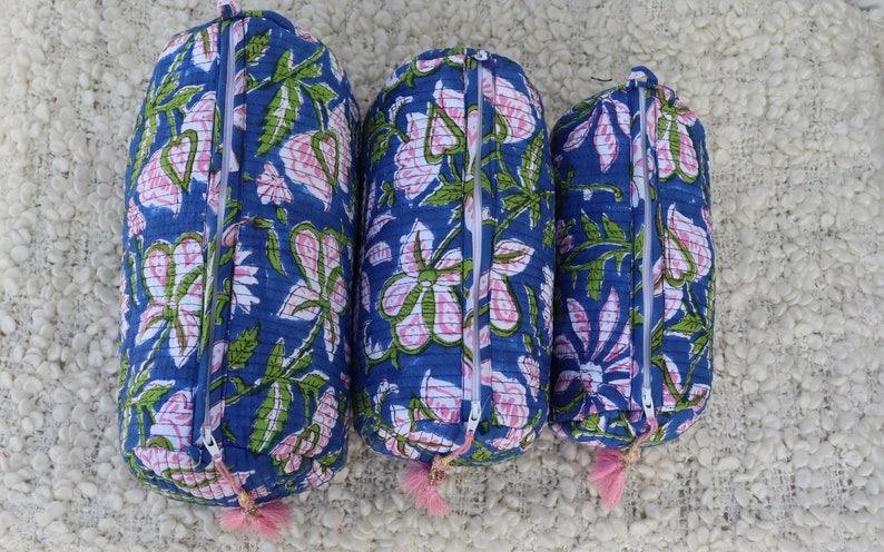 ชุด 3 ชิ้นผ้าฝ้ายอินเดียพิมพ์ลายดอกไม้กระเป๋า,กระเป๋าเดินทาง,กระเป๋าแต่งหน้า,กระเป๋าซักผ้าผ้านวม,ชุดโกนหนวด,กระเป๋าเครื่องแป้ง