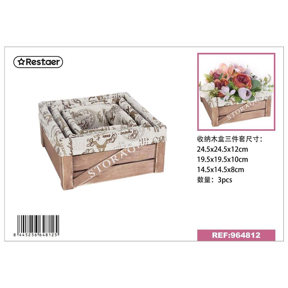 ชุดตะกร้าไม้สี่เหลี่ยม3ชิ้นสำหรับเก็บกล่องไม้ไผ่