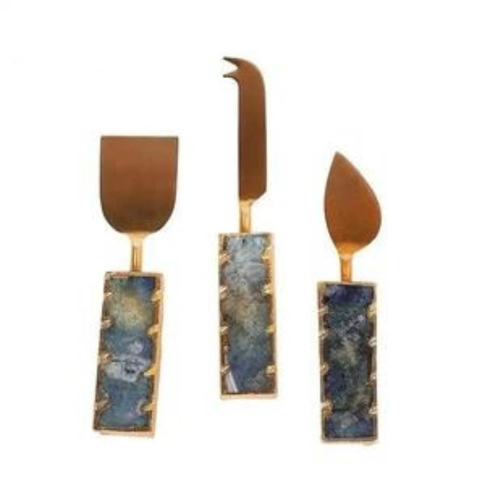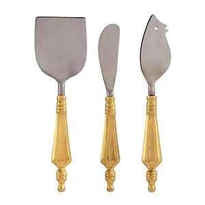 Set of 3 Pieces Stainless Steel Gold Cheese Set with Resin Handle Use for Serving Cheese Breakfast Dining Table