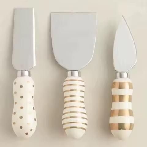 ชุดชีสสแตนเลส3ชิ้นมีด้ามจับหินอ่อนใช้สำหรับตัดชีส