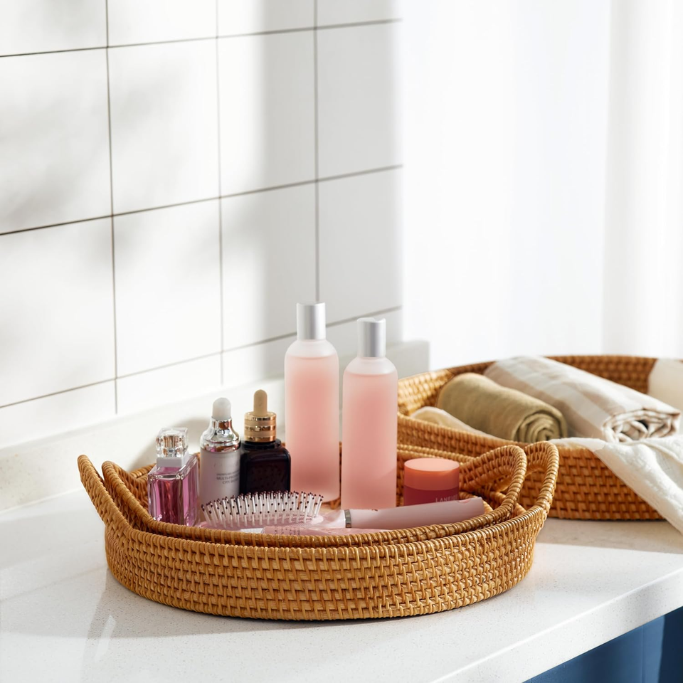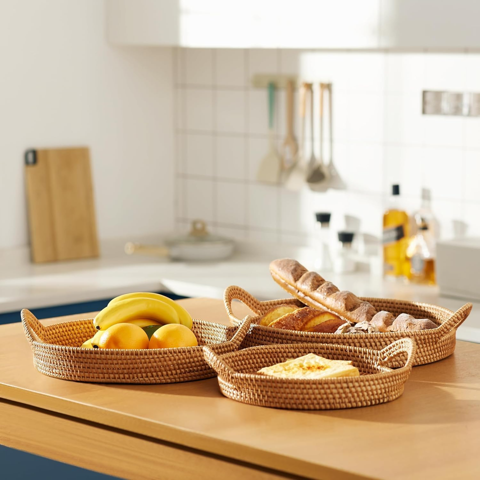 ชุดถาดหวาย3ใบถาดใส่ของในครัวเรือนเป็นมิตรกับสิ่งแวดล้อมทำจากเวียดนามทนทานและสวยงามขายส่ง