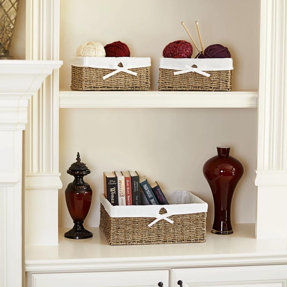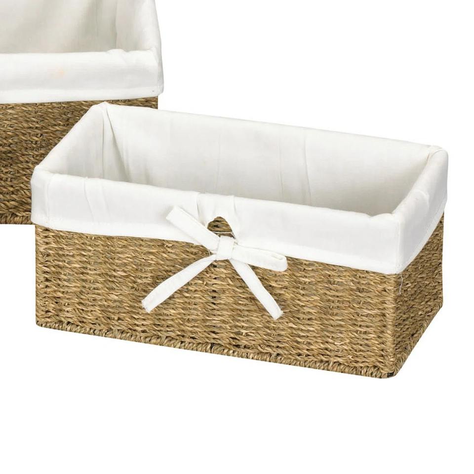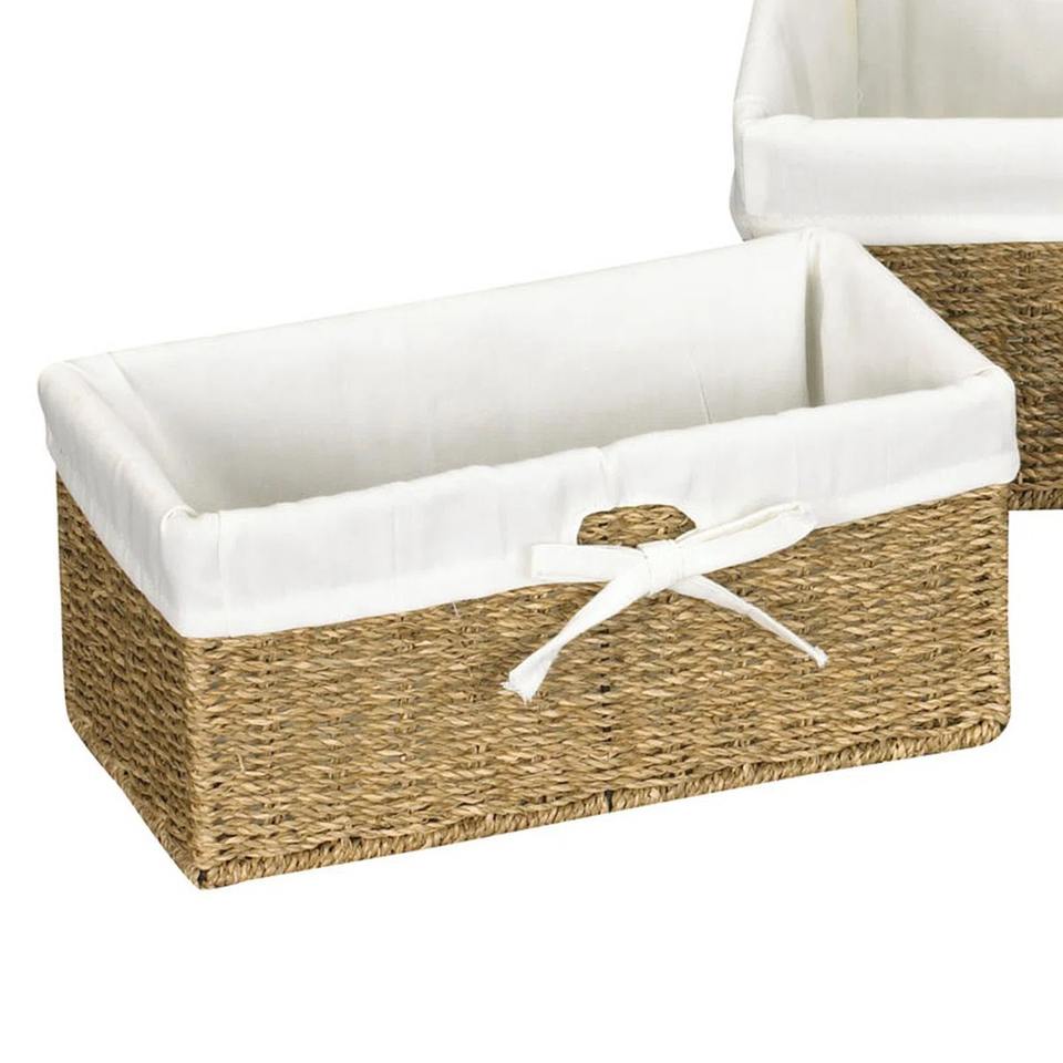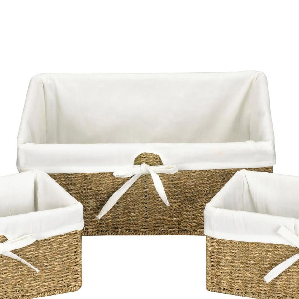 ชุดตะกร้าสานจากหญ้าทะเลทรงสี่เหลี่ยม 3 ใบ พร้อมซับในผ้าฝ้าย ตะกร้าเก็บของทำมือ ขายส่ง เป็นมิตรกับสิ่งแวดล้อม ผลิตในเวียดนาม