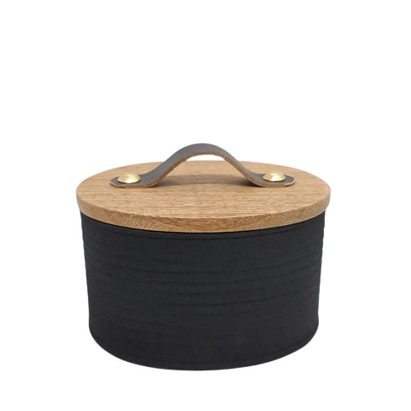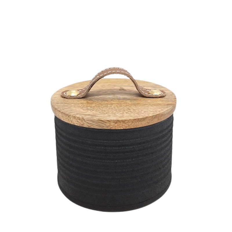 ชุดกระป๋องเหล็กขนาดเล็ก3ชิ้นฝาไม้ด้ามจับหนังสีดำด้านสีธรรมชาติที่เก็บอาหาร