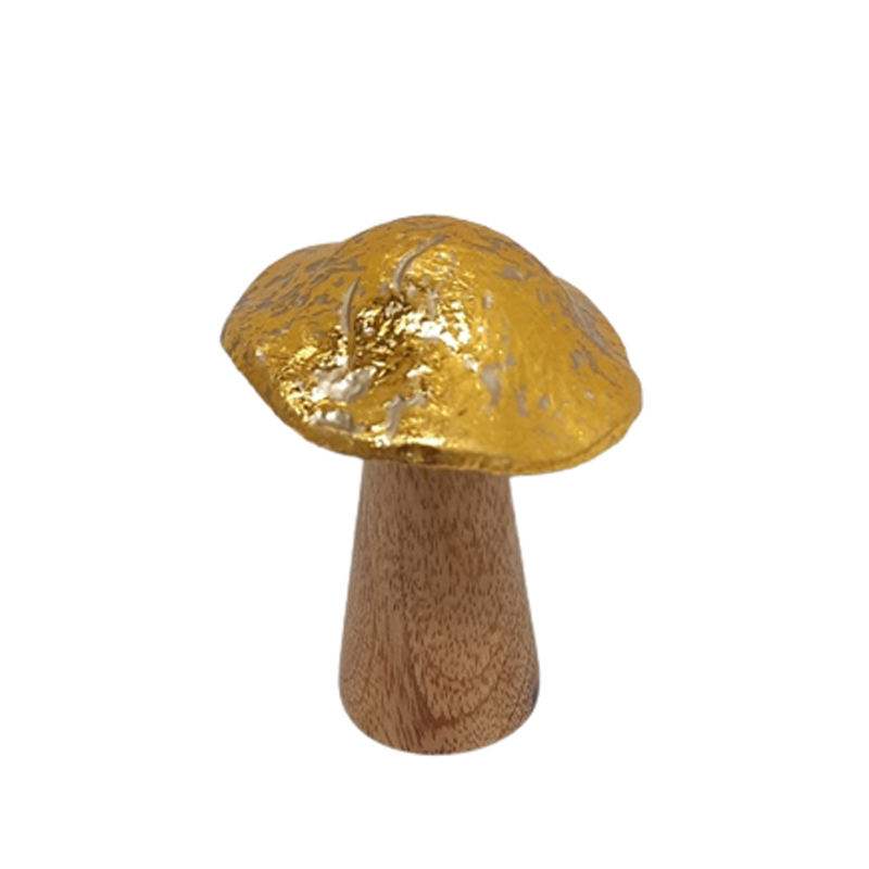 ชุด3ขนาดเล็กสไตล์วินเทจรูปปั้นเห็ดทำจากอลูมิเนียมและไม้สีทองและสีธรรมชาติสำหรับตกแต่งบ้านและสวนในร่ม
