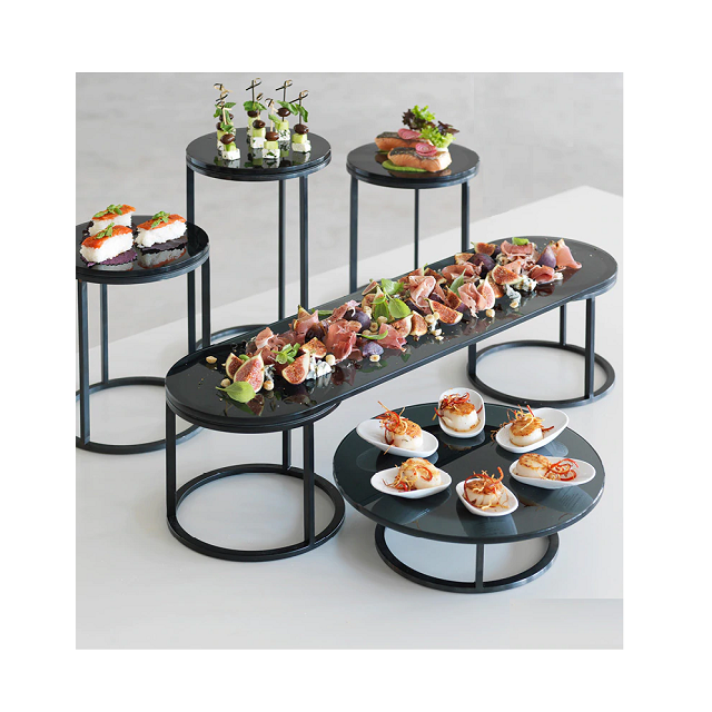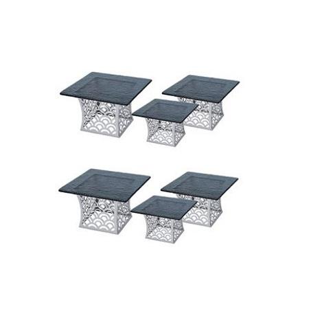 ชุดแท่นวางเค้กทรงสี่เหลี่ยม3ชิ้นหลายขนาดแท่นวางช็อคโกแลตทำจากโลหะและแก้ว