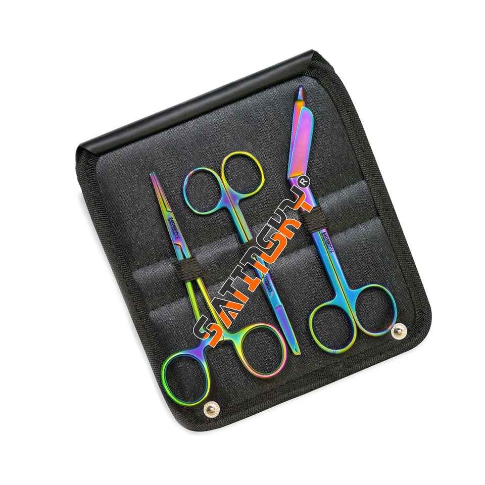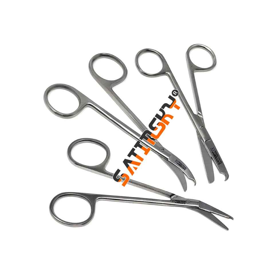 Set of 3 Suture Stitch Scissors 4.5", Straight Curved Angled